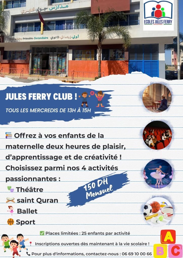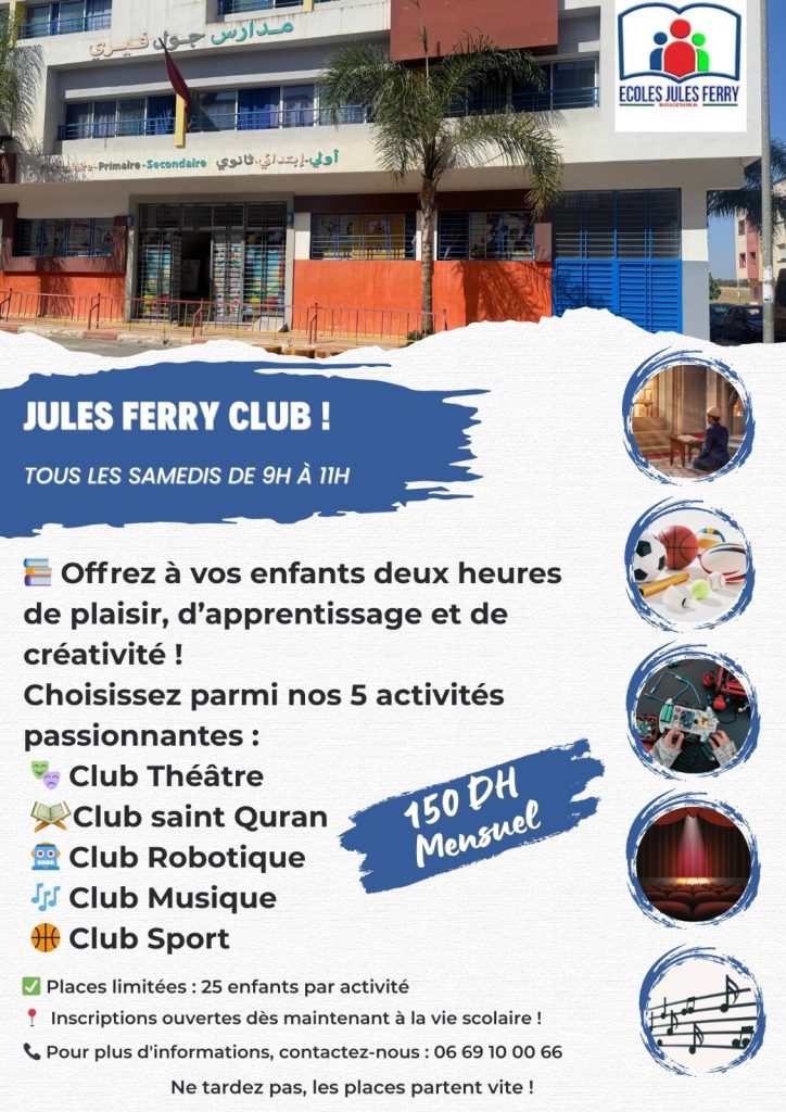 Club Jules ferry Activités et loisirs.❤️ Club septembre 27, 2025septembre 27, 2025 0 Prev post Aujourd’hui, les enfants découvrent la joie de partager leurs jouets avec leurs camarades et d’apprendre à jouer ensemble dans la bonne humeur.❤️ Next post Les Petits Artistes en Action !❤️ KAWTAR Laisser un commentaire Annuler la réponseVotre adresse e-mail ne sera pas publiée. Les champs obligatoires sont indiqués avec *Commentaire * Nom * E-mail * Site web Enregistrer mon nom, mon e-mail et mon site dans le navigateur pour mon prochain commentaire. Δ